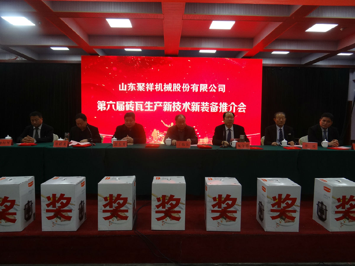 2019年1月8日,山東聚祥機械股份有限公司二十七周年慶典暨第六屆磚瓦生產新技術新裝備推介會在著名的中國麒麟之鄉—巨野縣隆重召開。巨野縣麗天明澤大酒店張燈結彩,喜迎八方來賓。共計400余人參加了此次活動,包括來自全國各地的160多名客戶代表,行業專家及公司全體員工,大家齊聚一堂、共話友誼、共謀發展。