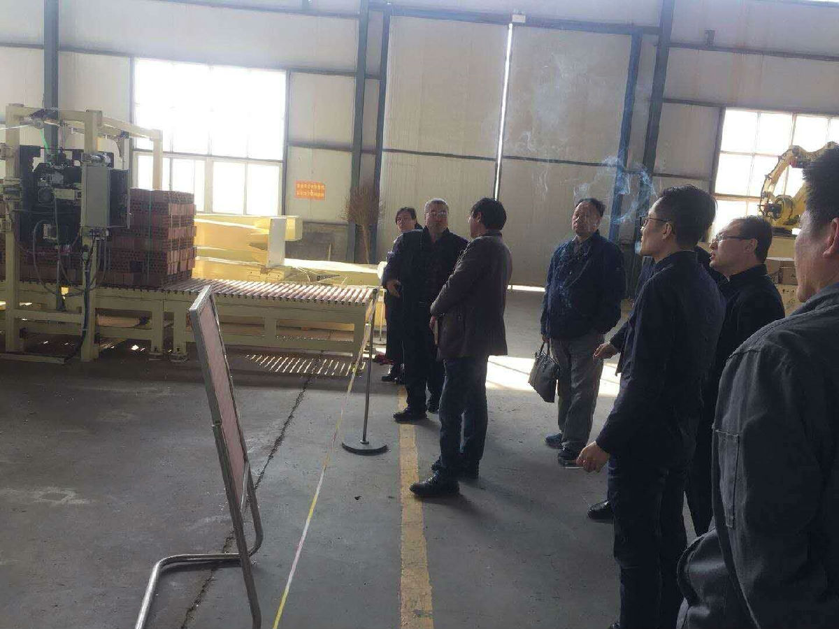 陽春布德澤、萬物生光輝。3月16日下午參加完山東省機(jī)械制造產(chǎn)學(xué)研對接會菏澤站專項(xiàng)活動的山東大學(xué)機(jī)械學(xué)院教授陶金鈺、山東大學(xué)電氣工程學(xué)院教授林明星、工信部電子第五研究所濟(jì)寧分院副院長于坤正等專家組一行,來山東聚祥機(jī)械股份有限公司實(shí)地調(diào)研。專家組首先詳細(xì)聽取了董事長、總經(jīng)理龐守恩近幾年企業(yè)創(chuàng)新發(fā)展、轉(zhuǎn)型升級情況的介紹,參觀了公司新研發(fā)的半自動、全自動卸磚打包機(jī)系統(tǒng)及其他的自動化裝備,隨后在董事長龐守恩陪同下又到巨野縣順達(dá)新型建材有限公司現(xiàn)場參觀了聚祥公司研發(fā)生產(chǎn)的新型墻材生產(chǎn)線自動化成套裝備。